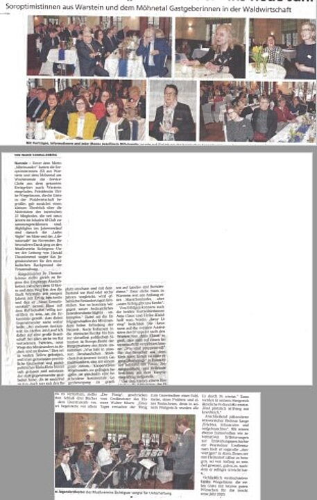 Für die Soroptimistinnen (SI) Warstein-Möhnetal gab es am Wochenende gleich mehrere Gründe zum Feiern. In der Waldwirtschaft stießen die Club-Schwestern mit vielen Gästen und Gratulanten auf das zehnjährige Bestehen der lokalen Serviceorganisation an. Gleichzeitig freute sich die amtierende Präsidentin, das 100 jährige Jubiläum von SI-International verkünden zu können. Außerdem, so Cäcilia Eickhoff-Siepe: „Es ist ein schönes Gefühl wieder auf Menschen zu treffen, sich auszutauschen und gemeinsam etwas auf den Weg zu bringen.“
