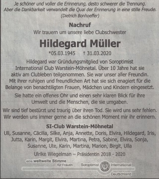 „Es ist unheimlich wichtig, über ganz Deutschland – und die ganze Welt – hinweg auf diese Themen aufmerksam zu machen. Umso stolzer sind wir, dass wir hier in Warstein unseren Teil dazu beitragen können“, so Cäcilia Eickhoff-Siepe, Präsidentin im SI-Club Warstein-Möhnetal . Bei den vielen Aktionen in Deutschland ist eines immer im Fokus: Orange the World- – Stand up for Women.